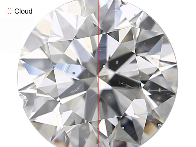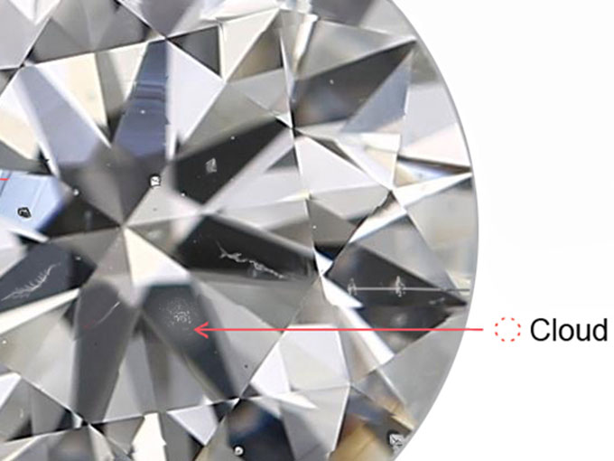 Le nuvole sono composte da centinaia di minuscoli punti che sono raggruppati insieme.ย Sono sempre bianchi e non valgono una preoccupazione se sono piccoli.ย Il problema si verifica quando la nuvola copre una grande porzione di una gemma SI1 o SI2.ย La pietra puรฒ assumere un aspetto lattiginoso.ย Le nuvole piccole ottengono un punteggio di 7/10 ma le nuvole grandi ottengono un punteggio di 2/10.ย Chiedi al tuo gioielliere se il diamante รจ lattiginoso.