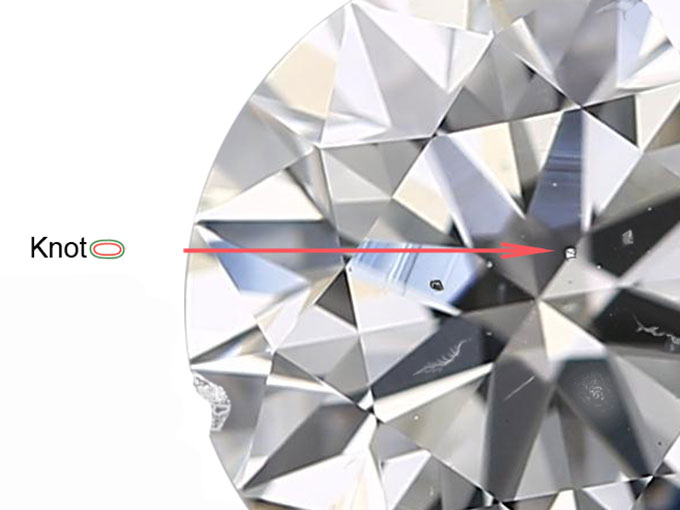 Quando un diamante ha un nodo posteriore, in realtร  รจ un cristallo di diamante all’interno di un diamante che non ha le stesse linee di crescita o grana interna.ย รˆ un po ‘come un nodo in un pezzo di legno causato dal ramo che cresce dal tronco.ย I nodi non sono facilmente visibili in quanto non sono scuri come quelli del legno, ma piuttosto simili nel colore all’altro cristallo piรน grande a cui sono attaccati.ย I nodi sono per lo piรน accettabili e ottengono un punteggio di 8/10.