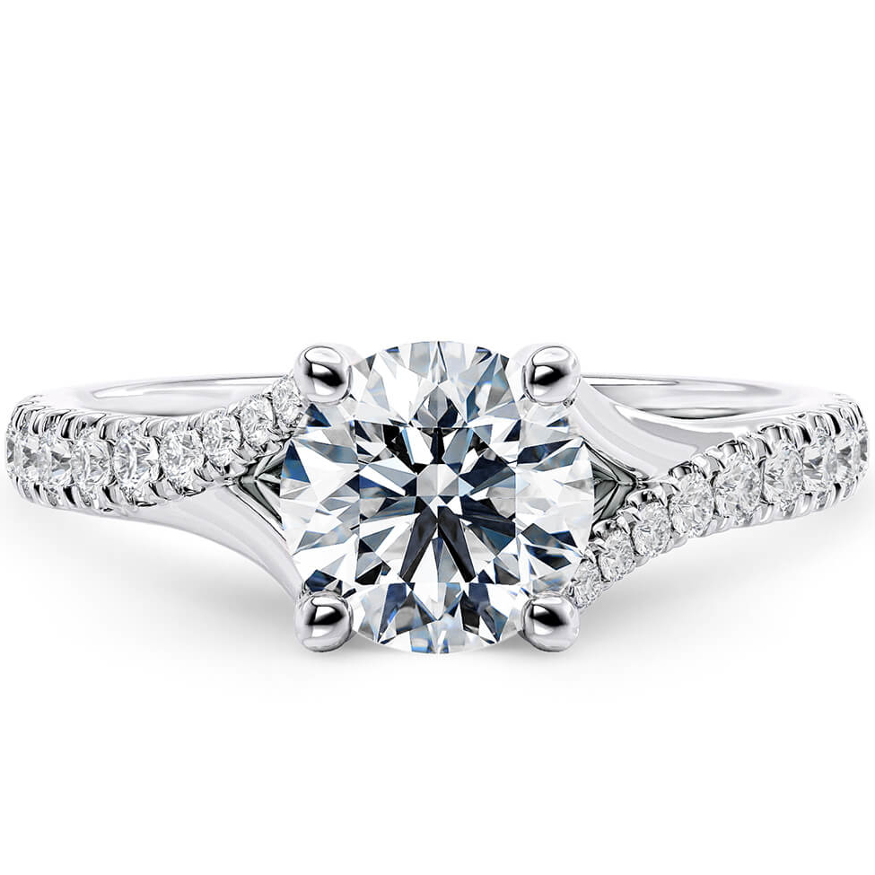 Anello Diamante “Cassandra”– Diamante Lab, Taglio Rotondo, Diamanti sul gambo e Montatura in Platino (950)