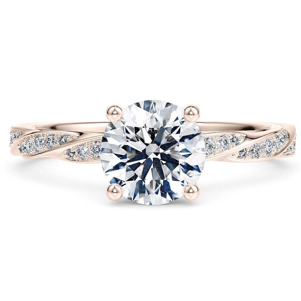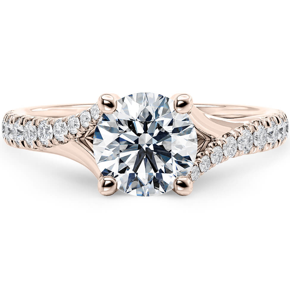 Anello Diamante “Margot”– Diamante Lab, Taglio Rotondo, Diamanti sul gambo e Montatura in Oro Rosa 18 kt